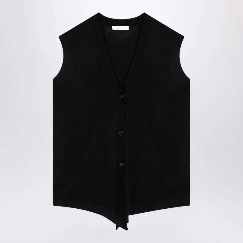 Black wool waistcoat cardigan from The Row featuring a V-neck and front button fastening. Gender: Women Material: 100% Wool Color: Black Made in: IT Product ID: 8266Y590/P_THERO-BLK *Import tax/duty will be calculated at checkout (If applicable)