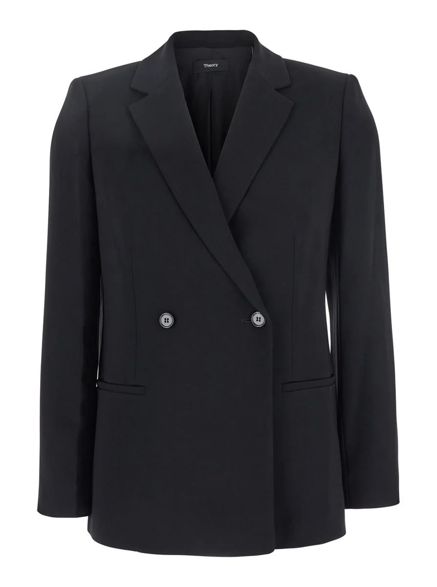Theory Black Double Breasted Jacket With Shoulder Pads In Tech Fabric Woman
