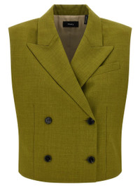 City Twill vest, slightly cropped double-breasted style with front button closure, peak lapels, chest pocket Gender: Women Material: 100% POLYESTER Color: GREEN Made in: Imported Product ID: P0605101U86 *Import tax/duty will be calculated at checkout (If applicable)