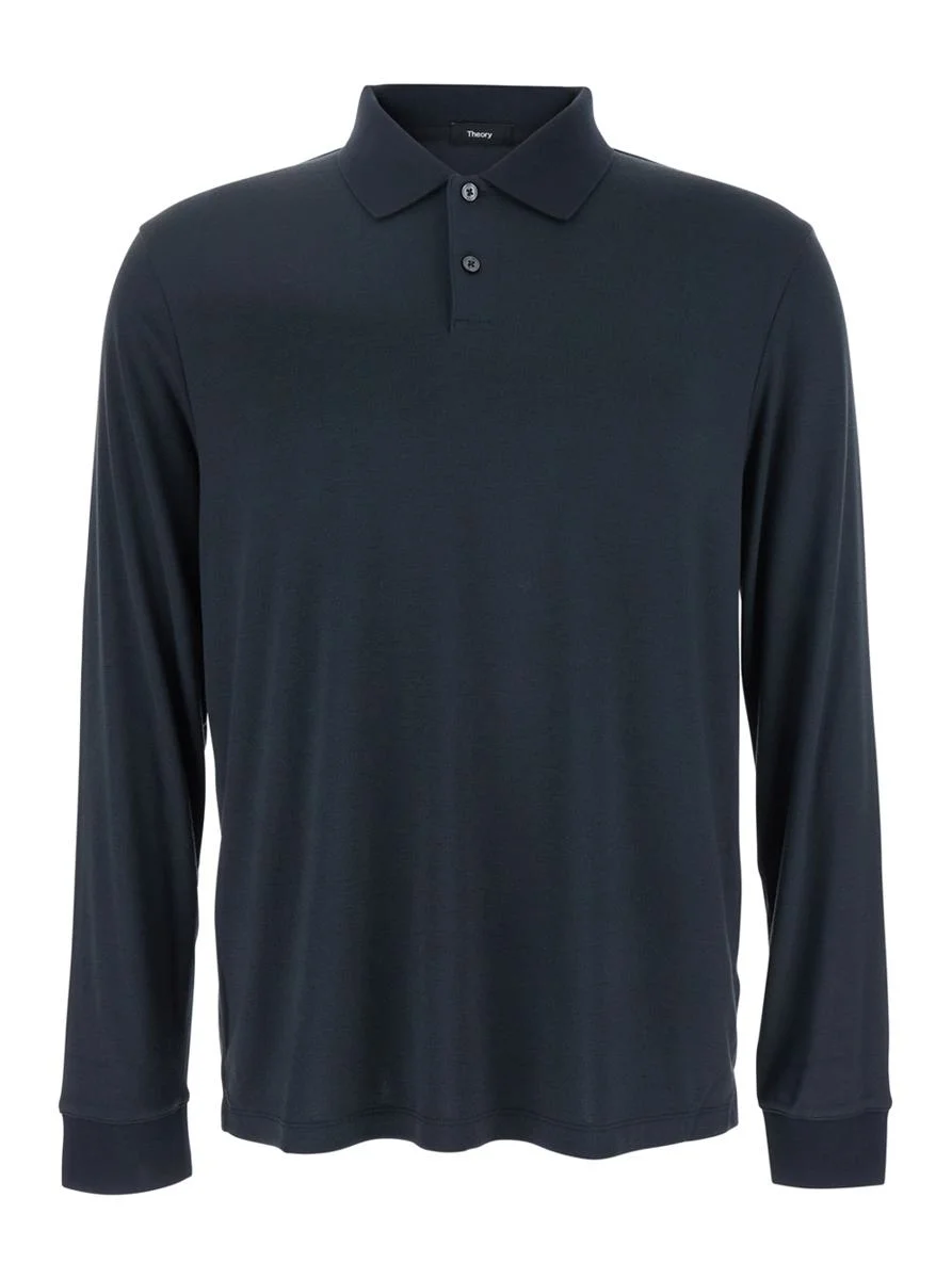 Theory 'Goris' Black Polo Shirt With Classic Collar And Long Sleeves In Tech Fabric Stretch Man