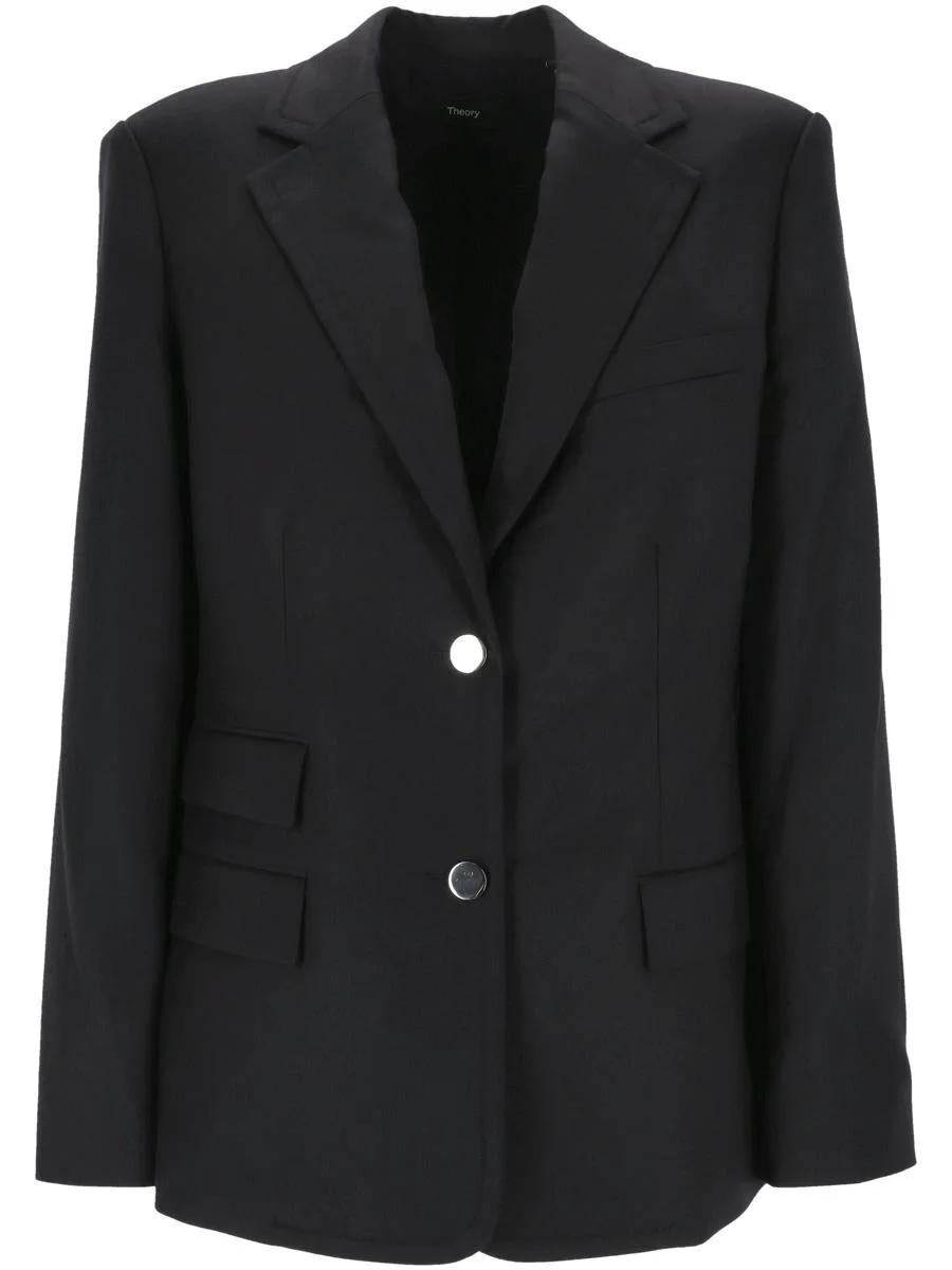 This navy blue flannel jacket is crafted from virgin wool and features a front button closure with notched lapels. It includes shoulder pads and long sleeves with split cuffs, along with a chest welt pocket and dart detailing. There are three side flap pockets for added functionality, a central rear vent for ease of movement, and a fully lined interior. The design is completed with a straight hem. Gender: Women Material: 100% VIRGIN WOOL Color: BLUE Made in: VN Product ID: O0801102G0F *Import tax/duty will be calculated at checkout (If applicable)