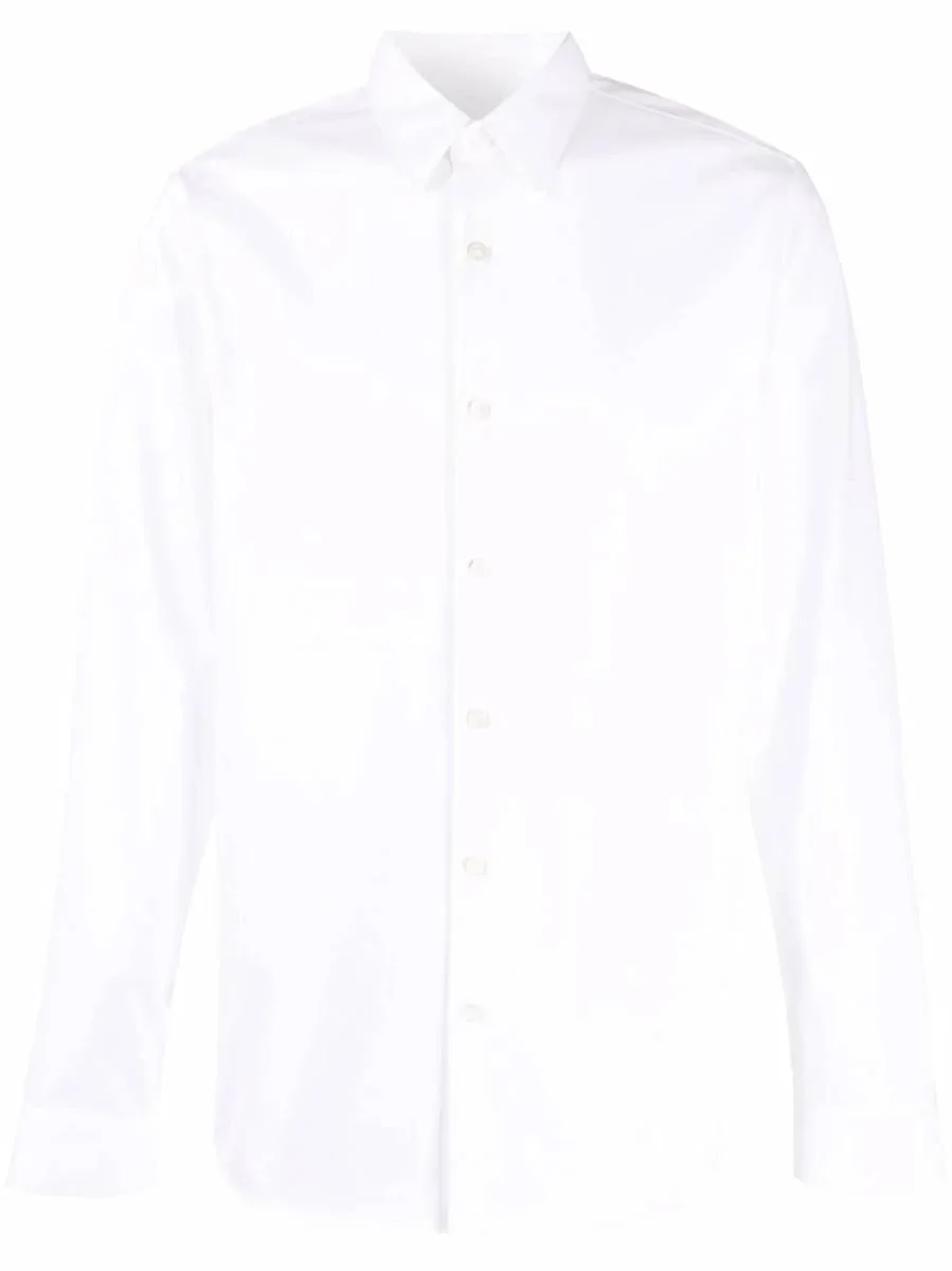 Shirt White Pointed collar Long sleeves Front button closure Buttoned cuffs Cotton blend Relaxed fit Gender: Men Color: WHITE Made in: Imported Product ID: J0794505100 *Import tax/duty will be calculated at checkout (If applicable)