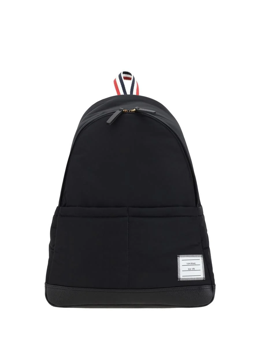 THOM BROWNE'S BACKPACK FEATURES A DOUBLE-SLIDER ZIPPER CLOSURE FOR EASY ACCESS. ADJUSTABLE, PADDED SHOULDER STRAPS PROVIDE COMFORT, WHILE THE TOP HANDLE OFFERS A SECOND CARRYING OPTION. THE TWO SIDE WELT POCKETS AND FRONT PATCH POCKET PROVIDE AMPLE ROOM FOR ESSENTIALS. THE BRAND'S ICONIC MONOGRAM PATCH APPLIED TO THE FRONT AND THE INNER LINING WITH THE BRAND'S CLASSIC COLORED BANDS ADD A DISTINCTIVE TOUCH. INSIDE, THE BACKPACK FEATURES A SINGLE COMPARTMENT, COMBINING PRACTICALITY AND STYLE. UNI Gender: Men Material: POLYESTER Color: Black Made in: IT Product ID: UAG210A07259_001 *Import tax/duty will be calculated at checkout (If applicable)