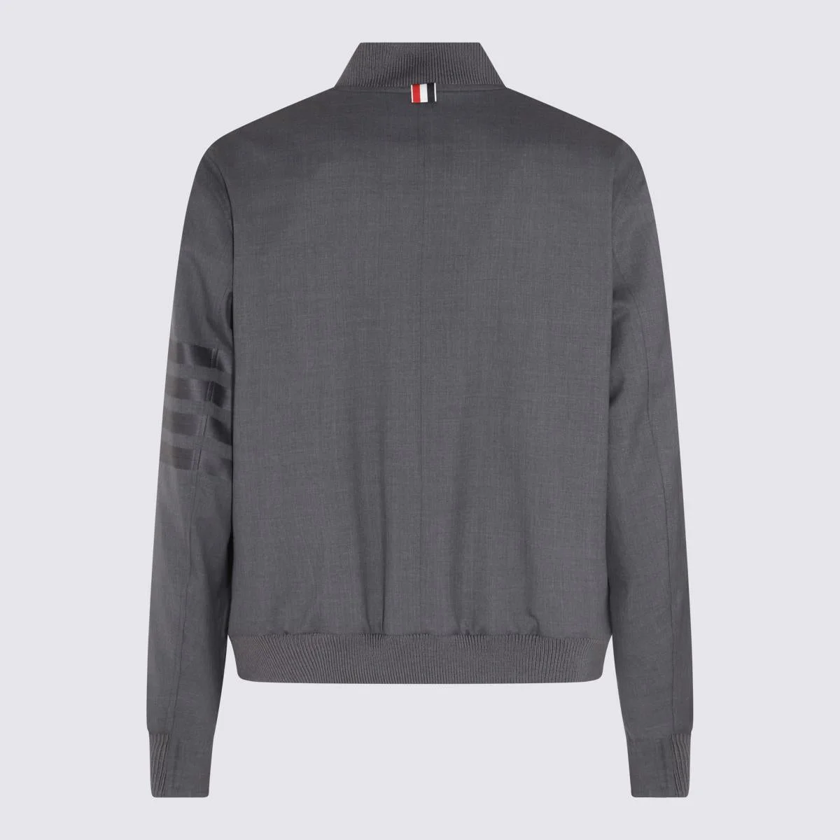 Dark grey wool knitwear from Thom Browne featuring long sleeves, zip closure, pockets, ribbed hem and regular vestibility. Size Type: NUMERIC RTW Gender: Men Material: 100%WOOL Color: GREY Made in: Imported Product ID: MJO030A06146025 *Import tax/duty will be calculated at checkout (If applicable)