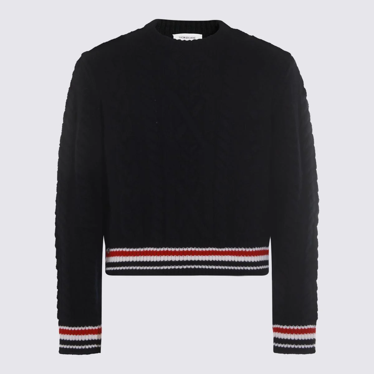 Dark navy wool knitwear from Thom Browne featuring round collar, long sleeves and soft vestibility. Size Type: NUMERIC RTW Gender: Men Material: 98% VIRGIN WOOL 1% ELASTANE 1% POLYAMIDE Color: BLUE Made in: Italy Product ID: MKA570AY1005415 *Import tax/duty will be calculated at checkout (If applicable)