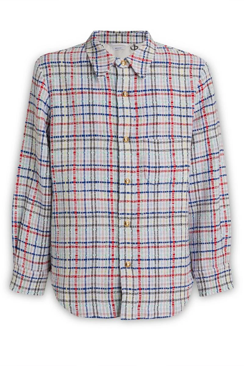 Micro Gingham Tweed Snap Front Shirt Jacket