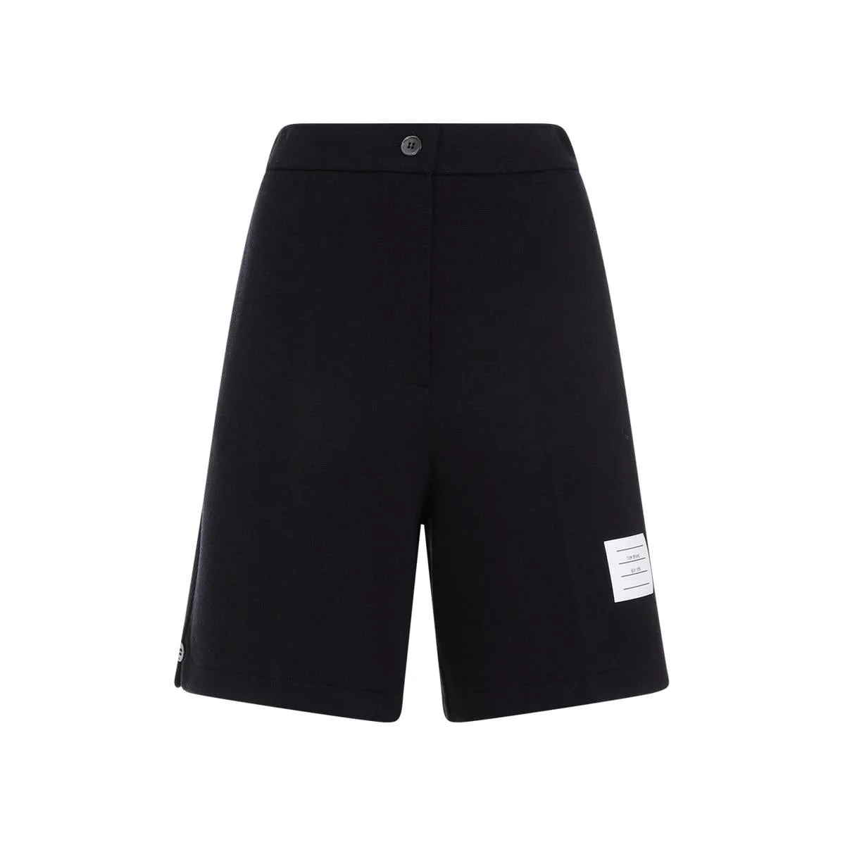 Thom Browne High Waisted Navy Virgin Wool Shorts. Navy blue virgin wool, waistline with button and zip fastening, inseam side pockets, branded label on the front, back signature grosgrain, v-line hem with button detail, high waist. Gender: Women Material: 100%VIRGIN WOOL Color: BLUE Made in: IT Product ID: FJQ110A.J0020_415 *Import tax/duty will be calculated at checkout (If applicable)