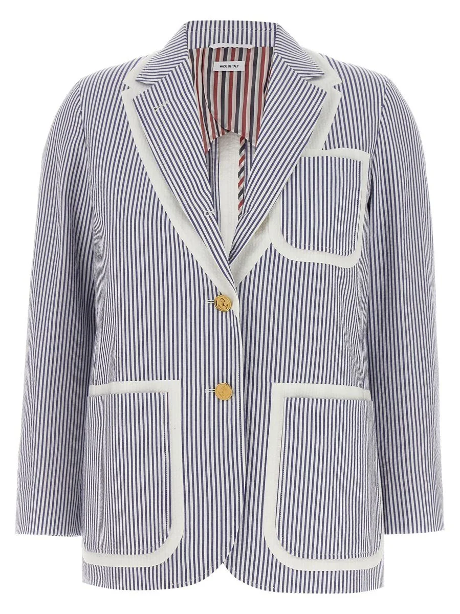 Thom Browne Single-Breasted Seersucker Blazer