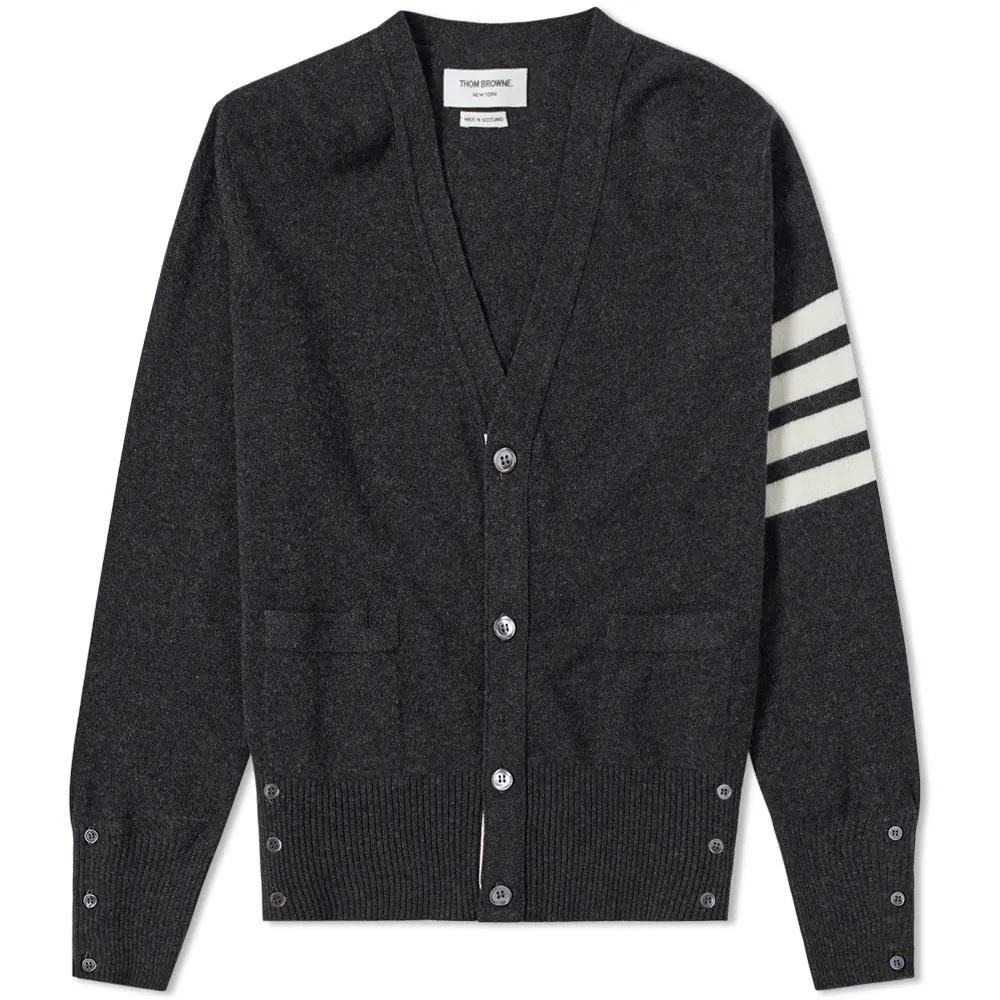 Dark Grey Cashmere 4-bar V-neck Cardigan