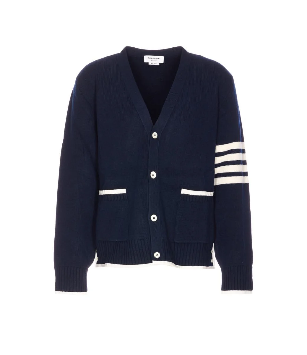 Thom Browne Blue Cardigan With Buttons Closure, Buttons Closure, V-Neck, Long Sleeves, Pockets, UNIVERSAL SIZE Gender: Men Material: 100% VIRGIN WOOL Color: BLUE Made in: Italy Product ID: MKC608AY1029415 *Import tax/duty will be calculated at checkout (If applicable)