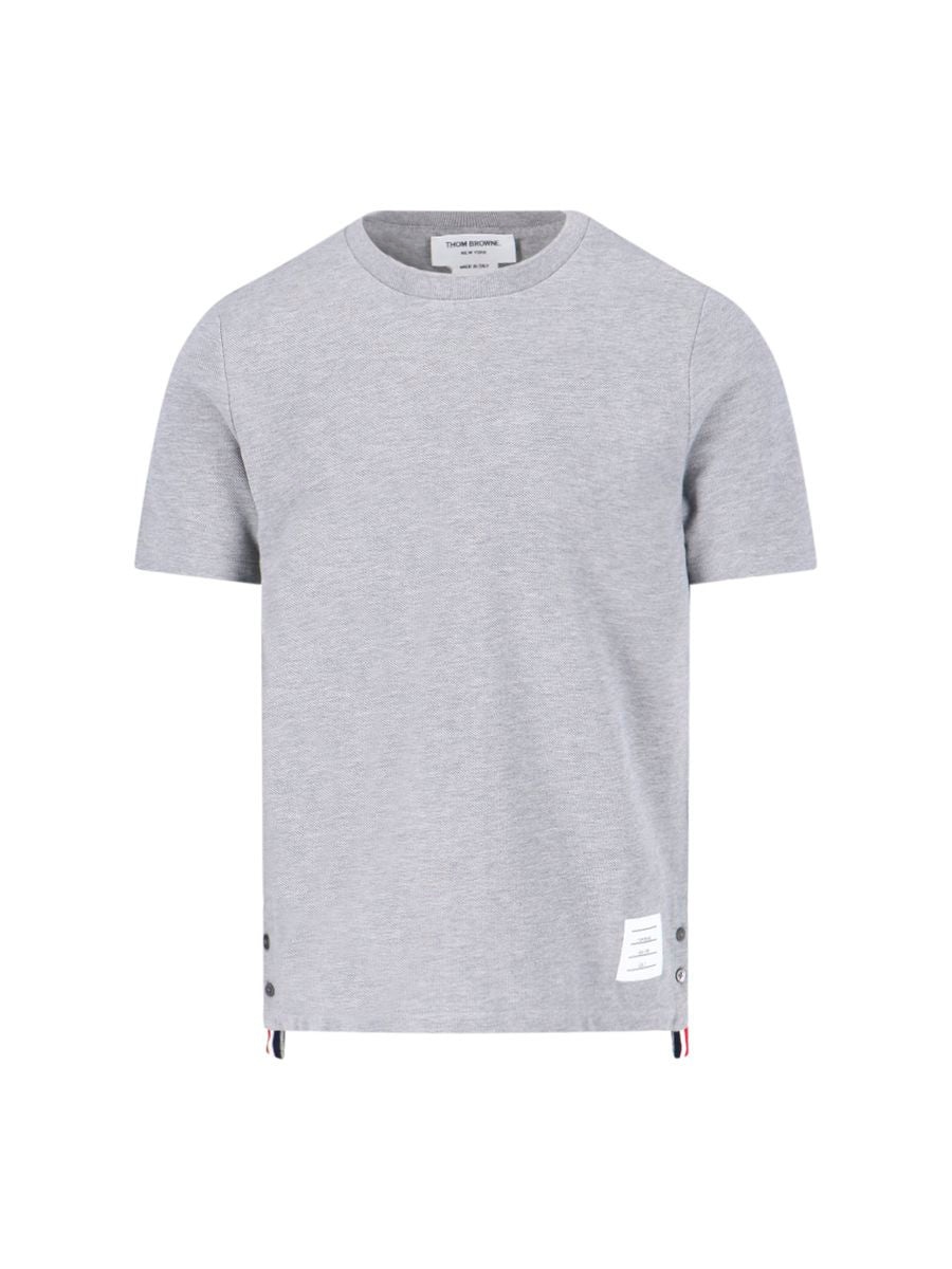 Light Grey Cotton Pique Center Back Stripe Relaxed Fit Tee