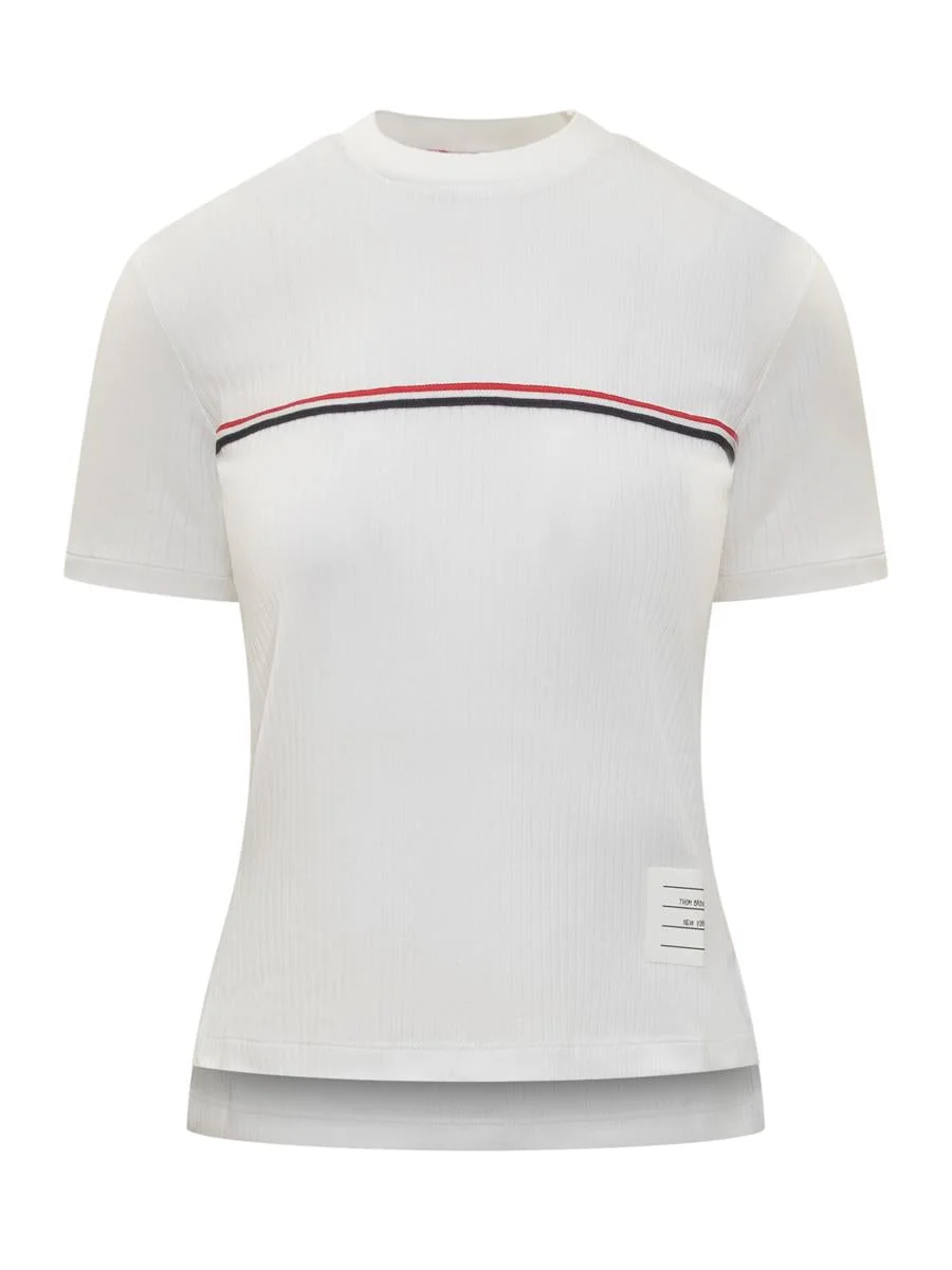 SHORT SLEEVE TEE W/ RWB STRIPE IN HIGH TWISTED COT Gender: Women Material: 100% COTTON Color: WHITE Made in: IT Product ID: FJS143AJ0066 100 *Import tax/duty will be calculated at checkout (If applicable)