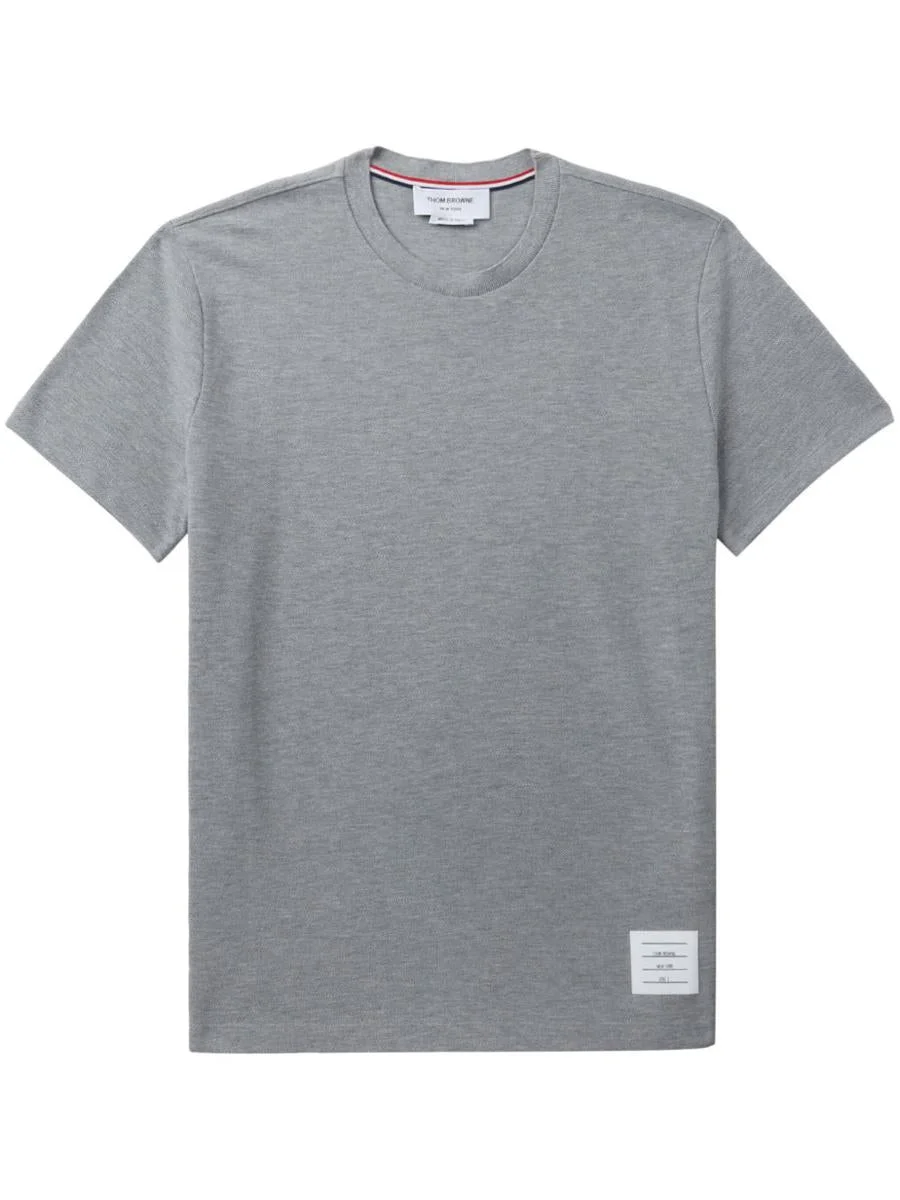 light grey cotton signature 4-Bar stripe logo patch to the front signature grosgrain loop tab crew neck short sleeves straight hem Gender: Men Material: 100% COTTON Color: Grey Made in: Italy Product ID: MJS123A00050055 *Import tax/duty will be calculated at checkout (If applicable)
