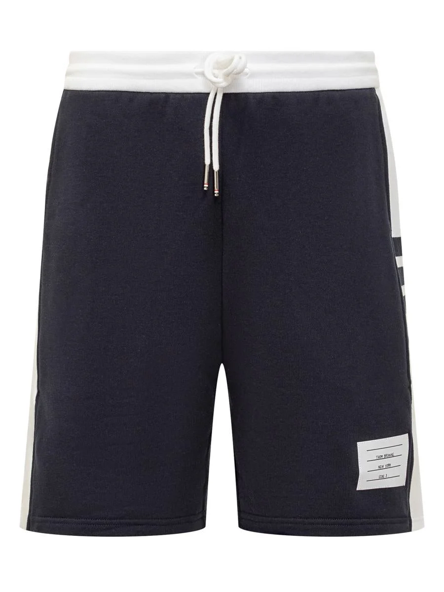Navy blue cotton shorts with white elastic band and drawstring, side panels with iconic stripes and front logo patch. Gender: Men Material: 100% COTTON Color: BLUE Made in: Imported Product ID: MJQ222A03037 415 *Import tax/duty will be calculated at checkout (If applicable)