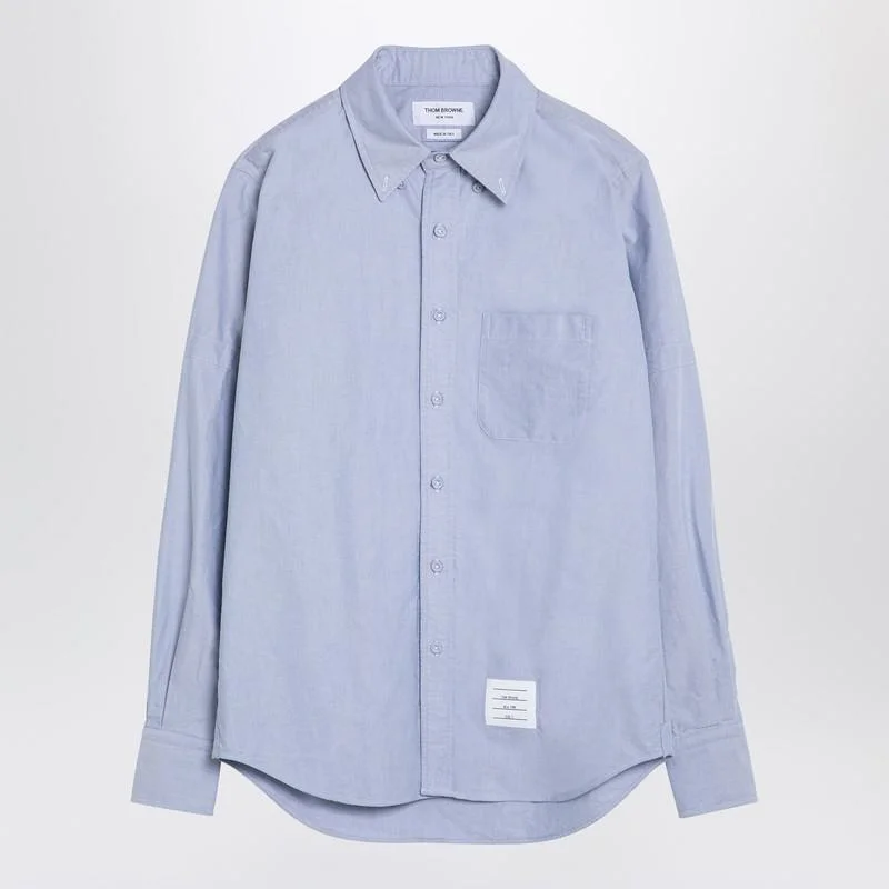 Light blue cotton shirt from Thom Browne featuring a button-down collar, long sleeves with button detail, a patch pocket on the chest, a front button placket, a logo patch on the front, a tricolour detail on the back and a curved hem. Gender: Men Material: 100% Cotton Color: BLUE Made in: IT Product ID: MWL403OF0313/P_THOMB-480 *Import tax/duty will be calculated at checkout (If applicable)