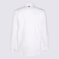 Thom Browne's shirt crafted in white cotton Oxford with tricolor detail along internal trim and logo tag at hem. Featuring classic collar, front button closure, long sleeves with buttoned cuffs, front pocket at chest and curved hem. The design is completed by the signature's striped grosgrain loop at back. Gender: MEN Material: SELF: 100% COTTON Color: WHITE Made in: IT Product ID: MWL010EF0313100 *Import tax/duty will be calculated at checkout (If applicable)