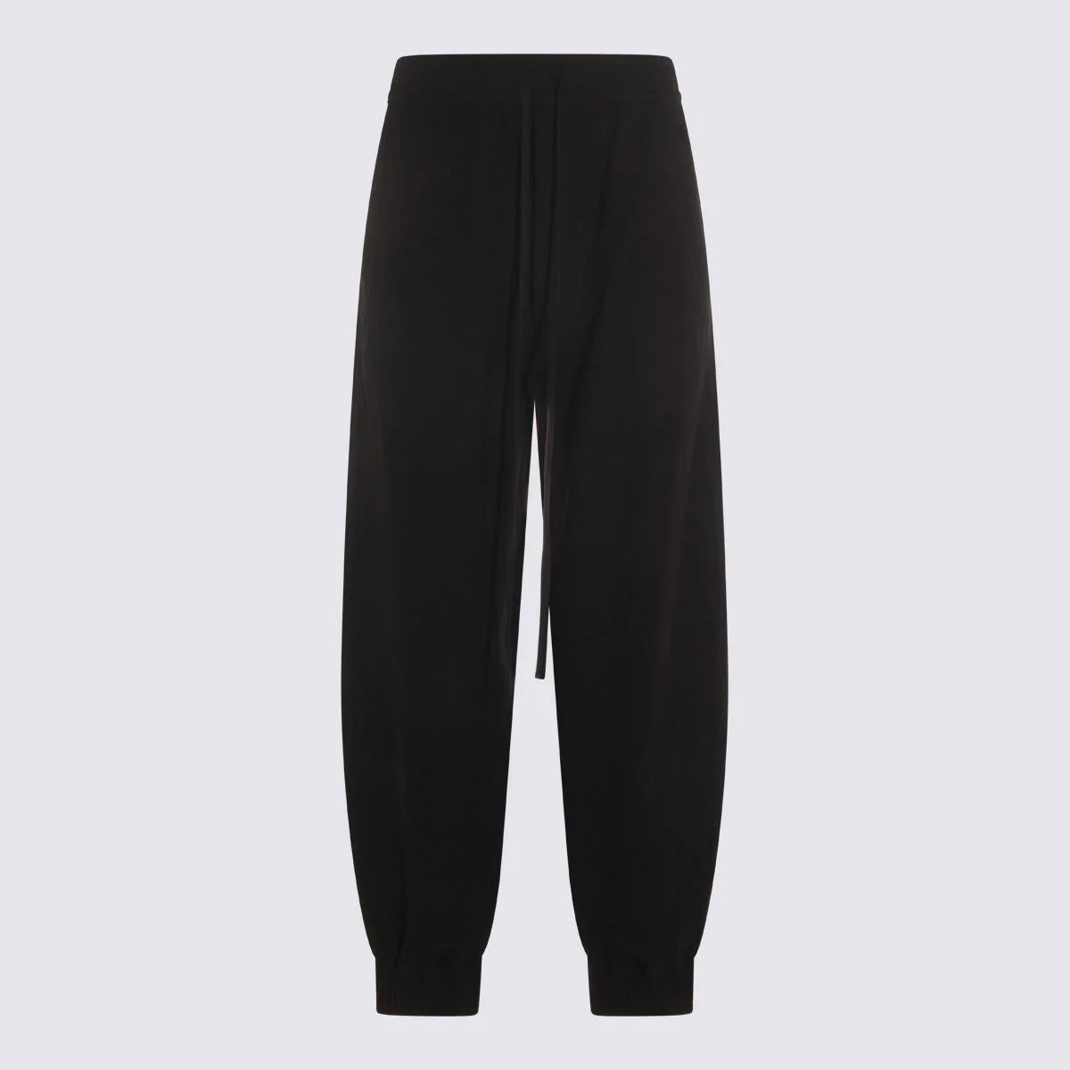 Black wool pants from Thom Krom featuring elasticated waistband with drawstring, ribbed cuffs and soft vestibility. Size Type: AMERICA Gender: Women Material: 100% WOOL Color: Black Made in: Portugal Product ID: WP1411 *Import tax/duty will be calculated at checkout (If applicable)
