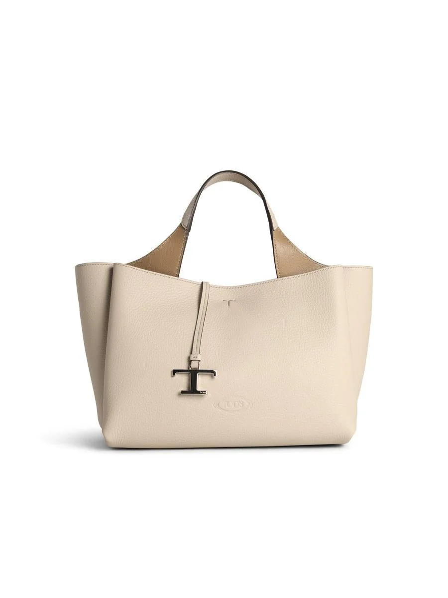 Front embossed logo, three compartments, two zip pockets, adjustable and removable shoulder strap, removable 'T' charm, snap hook closure, mettallo feet\n35 x 18 x 17 cm Gender: Women Material: 100% calfskin leather Color: Beige Made in: Italy Product ID: XBWAPAFL100QRI9O22 *Import tax/duty will be calculated at checkout (If applicable)