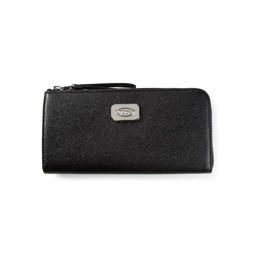 Black calf leather textured purse from tod's featuring a silver-tone logo plaque, an internal zipped pocket, multiple card slots, a note compartment and a leather zip pull. Dimension: length: 20 centimetres, width: 10 centimetres Gender: Women Material: OUTER COMPOSITION CALF LEATHER: 100% Color: Black Made in: Italy Product ID: XAWCBWAD400 D0UB999 *Import tax/duty will be calculated at checkout (If applicable)