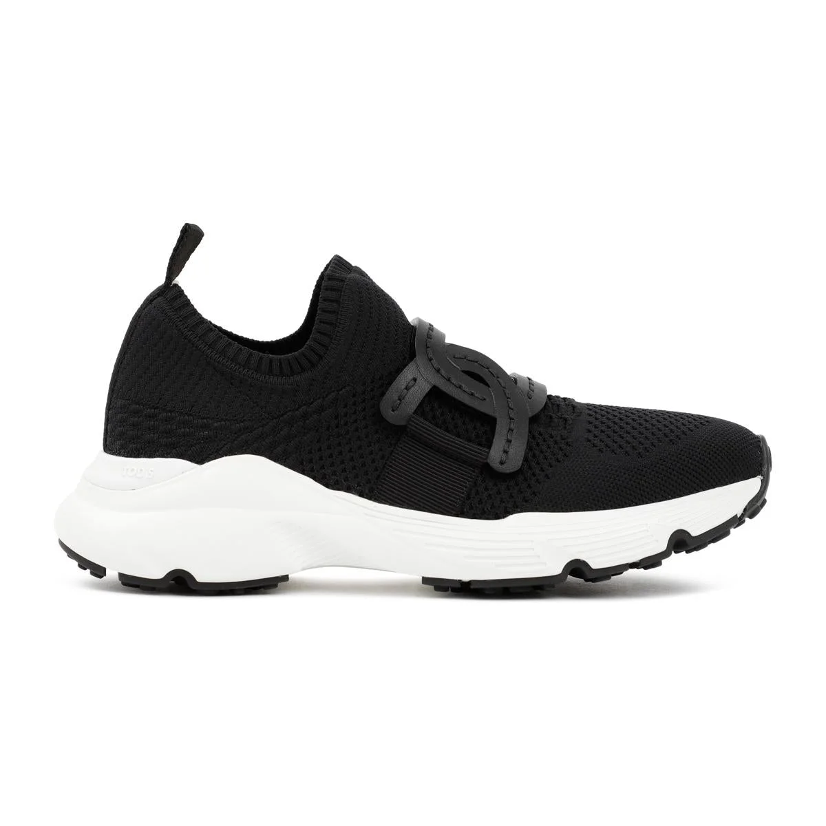 Tod`s Black Tech Fabric Sneakers. Black tech fabric upper, sock-like design, leather chain accessory, gros grain detailing and maxi rubber outsole. Logo details. Gender: WOMEN Material: 100%LYCRA FABRIC 100%CALF LEATHER 100%RUBBER Color: BLACK Made in: IT Product ID: XXW54C0EM60Q6LB999_ *Import tax/duty will be calculated at checkout (If applicable)