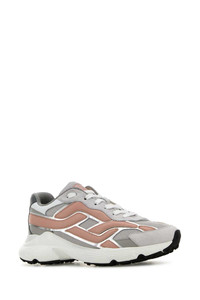 SNEAKERS IN LEATHER AND TECHNICAL FABRIC - GREY, PINK, WHITE