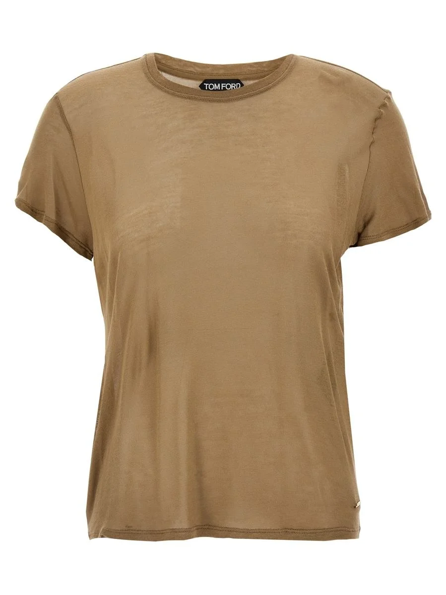 Bamboo viscose t-shirt, front metal logo plate, crew neck, short sleeves, side vents Gender: Women Material: 100% VISCOSE BAMBOO Color: BROWN Made in: IT Product ID: TSJ567JEX139JB172 *Import tax/duty will be calculated at checkout (If applicable)