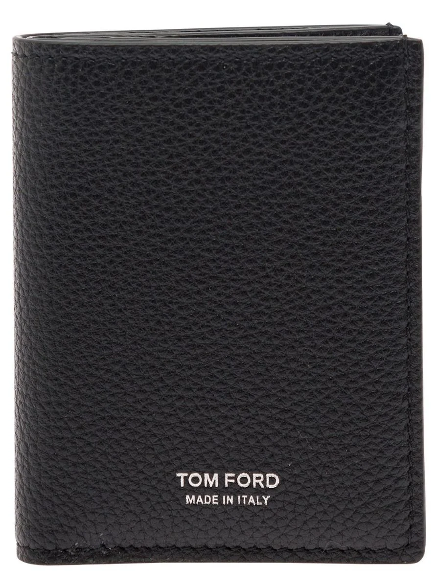 Tom Ford Black Card-Wallet With Embossed Logo In Hammered Leather Man