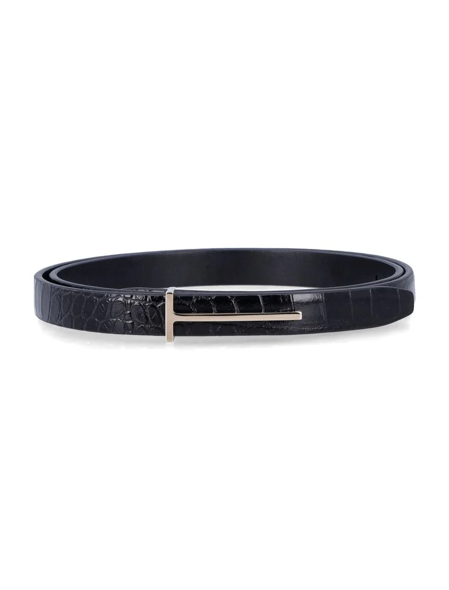 Tom Ford Black Crocodile Effect Leather Belt With T Buckle