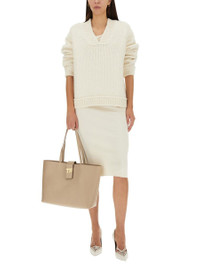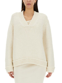V-NECK RIBBED CUFFS AND H SIZE: S/M/L Gender: Women Material: 68% ALPACA 10% WOOL 22% POLYAMIDE Color: IVORY Made in: IT Product ID: MAK1258_YAX588AW003 *Import tax/duty will be calculated at checkout (If applicable)