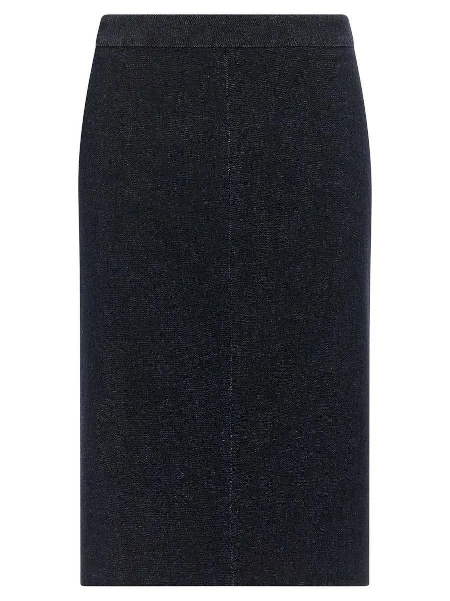 KNEE-LENGTH TAILORED DENIM SKIRT