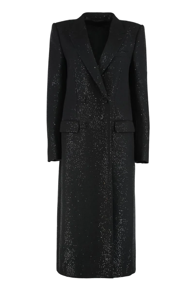 SEQUINED WOOL BLEND CREPE DOUBLE BREASTED COAT