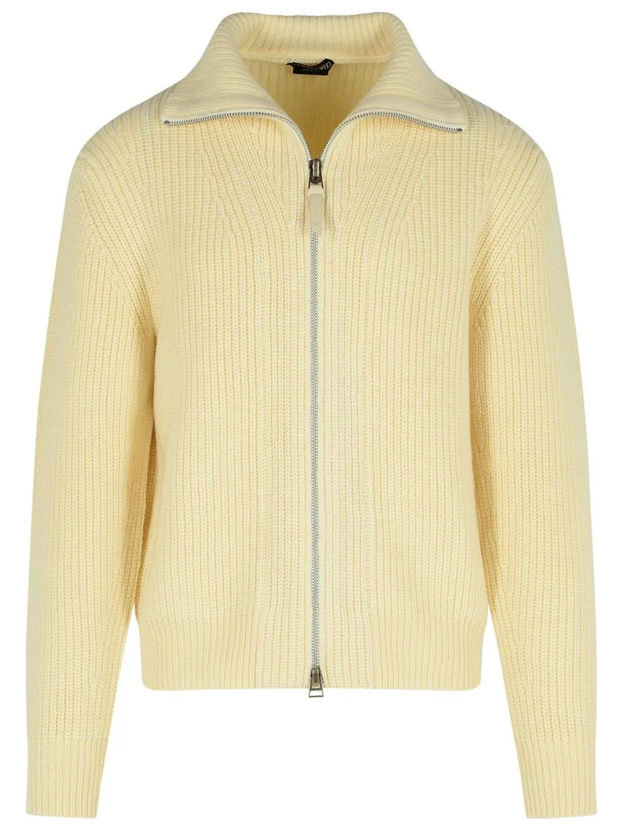 Slim-Fit Ribbed Wool and Mohair-Blend Zip-Up Cardigan Cream