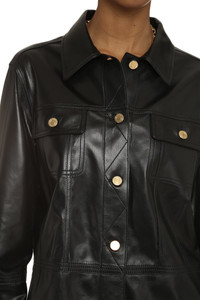 Leather overshirt Two buttoned front flap pockets Rounded hem 100% Lamb Gender: Women Material: LAMB Color: BLACK Made in: IT Product ID: CAL559LEX217_LB999 *Import tax/duty will be calculated at checkout (If applicable)