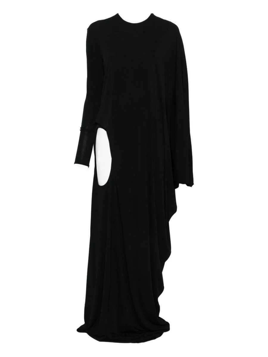 black cut-out detail draped design long sleeves round neck asymmetrical hem Gender: Women Color: Black Made in: Imported Product ID: ABJ879JEX179LB999 *Import tax/duty will be calculated at checkout (If applicable)
