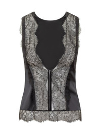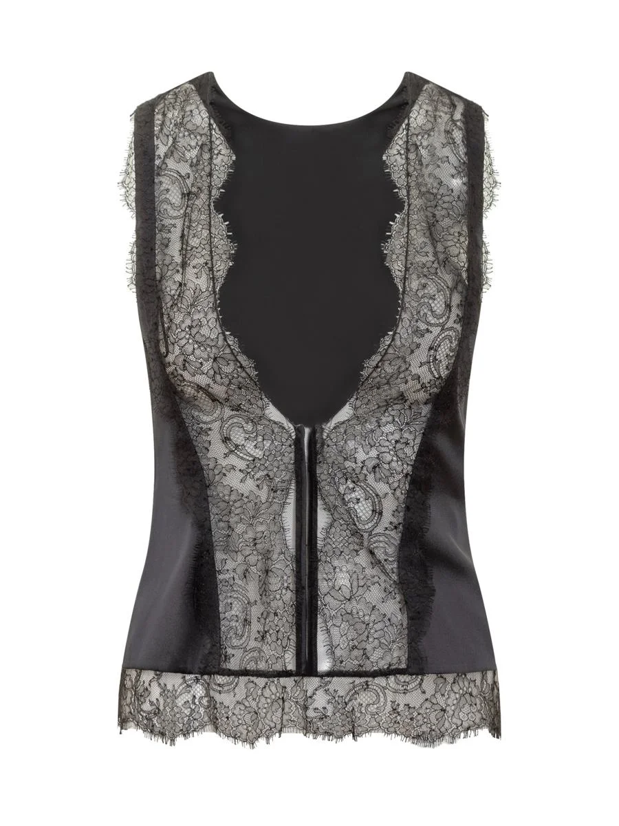 Satin top. Sleeveless. Lace details. Zipper on the side. Gender: Women Material: 93% SILK, 7% ELASTANE Color: Black Made in: Italy Product ID: TS2109FAX1095 LB999 *Import tax/duty will be calculated at checkout (If applicable)