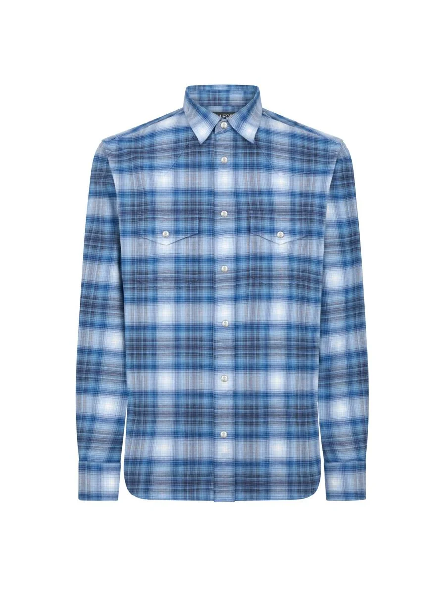 Front snap button placket Pointed collar; long sleeves, snap-buttoned cuffs Chest pockets with snap-buttoned flap Western yoke at front and back Slim fit Blue color 100% Cotton Made in Italy Gender: Men Material: 100% COTTON Color: BLUE Made in: Italy Product ID: HDS001FMC243ZBLUE *Import tax/duty will be calculated at checkout (If applicable)