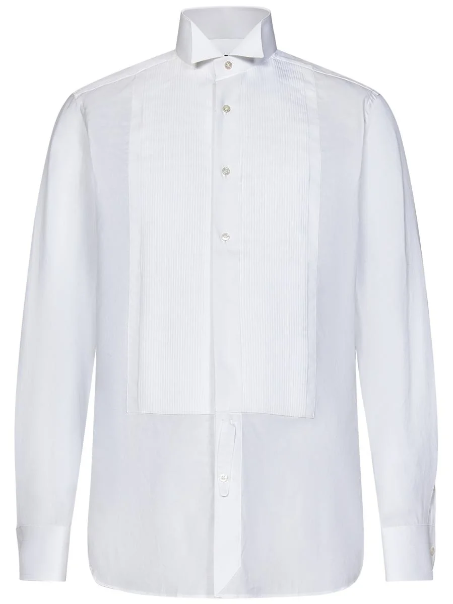 Front closure with partially visible mother-of-pearl buttons Classic collar; Two-button cuffs Pleated tone-on-tone plastron Regular fit Color: white 100% Cotton Made in Italy Gender: Men Material: 100% COTTON Color: WHITE Made in: Italy Product ID: HFCL02CGS01AW001 *Import tax/duty will be calculated at checkout (If applicable)