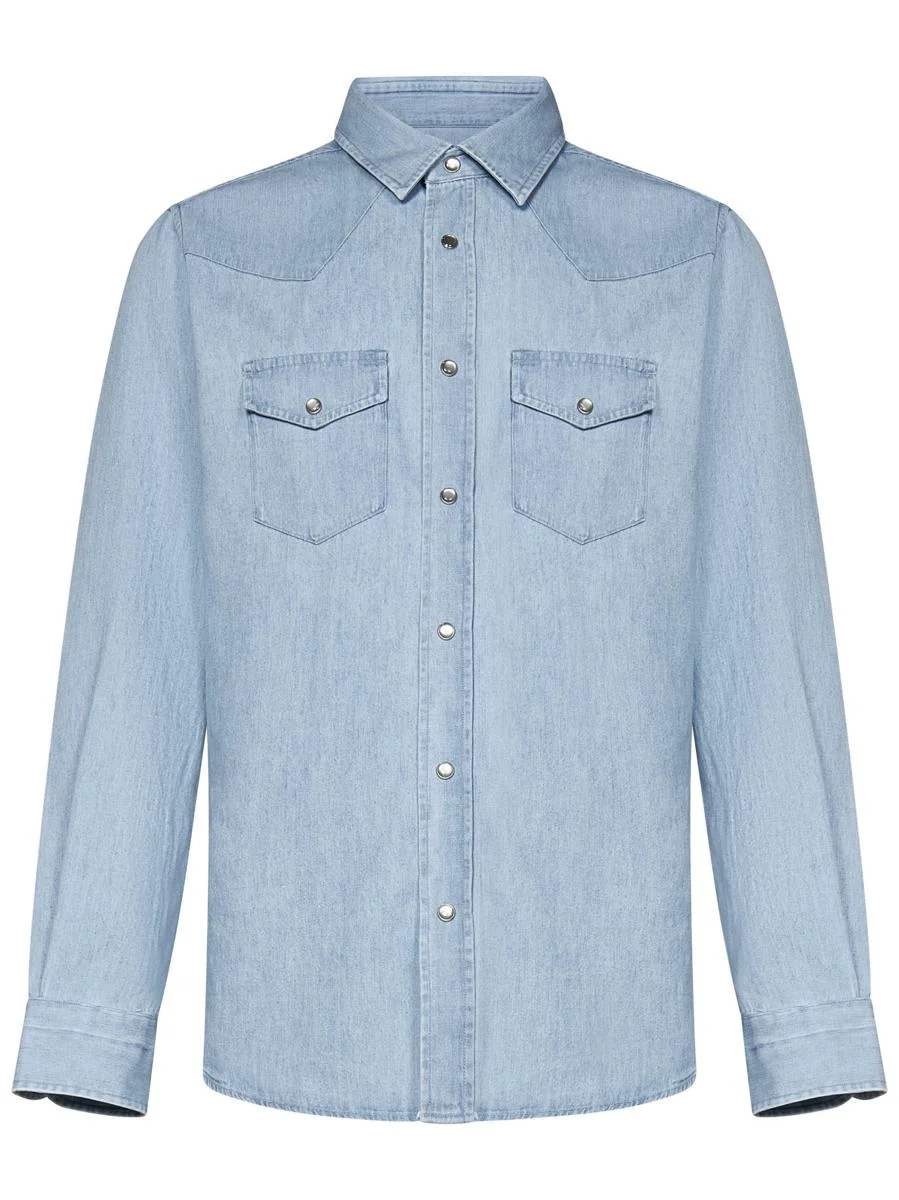 TOM FORD Denim shirt Origin: Italy Characteristics sky blue Front closure with snap button cuffs with snap buttons two flap pockets on the chest curved hem Composition 100% cotton Washing instructions Machine wash Gender: Men Material: FABRIC: 100%COTTON Color: CLEAR BLUE Made in: IT Product ID: HDS001FMC130F24HB215 *Import tax/duty will be calculated at checkout (If applicable)