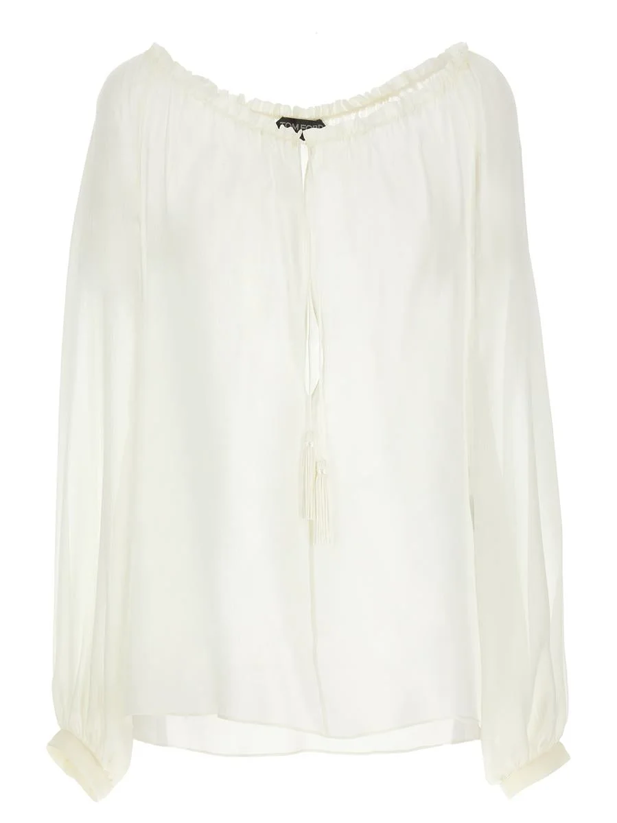 Silk georgette blouse, V-neck with adjustable drawstring to modulate the curl, long sleeves with cuffs Gender: Women Material: 100% SILK Color: WHITE Made in: IT Product ID: TS2091FAX852AW020 *Import tax/duty will be calculated at checkout (If applicable)