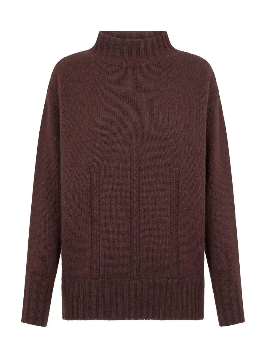 High collar, hem, and cuffs in wide ribbed knit Tonal stitching on the front Dropped shoulders; Long sleeves Asymmetrical hem with side slits Oversize fit Color: Dark Brown 64% Cashmere, 36% Cotton Made in Italy Gender: Women Material: 64% CASHMERE, 36% COTTON Color: Brown Made in: Italy Product ID: MAK1387YAX922KB870 *Import tax/duty will be calculated at checkout (If applicable)