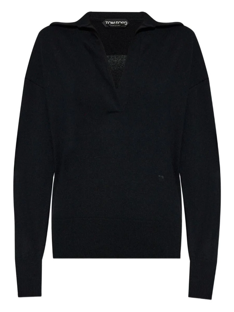 V-neck; Polo collar Long sleeves; Ribbed cuffs Tone-on-tone TF logo embroidery at the bottom Regular fit Color: Black 100% Cashmere Made in Italy Gender: Women Material: 100% CASHMERE Color: Black Made in: Italy Product ID: MAK1391YAX899LB999 *Import tax/duty will be calculated at checkout (If applicable)