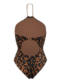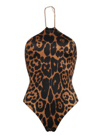 One-piece swimsuit. Leopard print. Halter tie with gold chain details. Showcase a bold look with this exclusive TOM FORD leopard print one-piece swimsuit, featuring a chic halter tie with a gold chain that adds a touch of luxury. Gender: Women Material: 100% POLYAMIDE Color: Multicolor Made in: Imported Product ID: SWJ046 JEP035 KB359 *Import tax/duty will be calculated at checkout (If applicable)