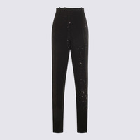 SEQUINED WOOL BLEND CREPE TAILORED STRAIGHT PANTS