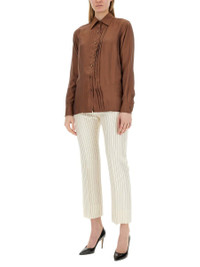 FABRIC: 65%VISCOSE 35%SILK BUTTON: 100%MOTHER OF PEARL MADE IN ITALY THE MODEL IS 185 CM TALL AND WEARS SIZE 38 IT SIZE: IT Gender: Women Material: FABRIC: 65%VISCOSE - 35%SILK BUTTON: 100%MOTHER OF PEARL Color: BROWN Made in: IT Product ID: CA3254_FAX1134KB561 *Import tax/duty will be calculated at checkout (If applicable)