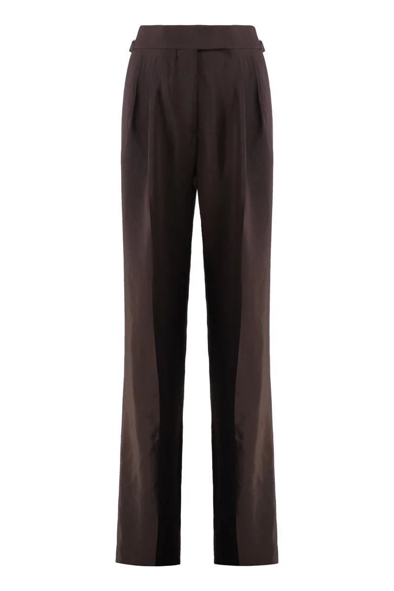 Wool blend trousers Two side pockets Two buttoned back welt pockets 76% Viscose, 24% Wool, 59% Cuprammonium rayon, 41% Silk Gender: Women Material: VISCOSE Color: BROWN Made in: Italy Product ID: PAW636FAX1513_KB800 *Import tax/duty will be calculated at checkout (If applicable)