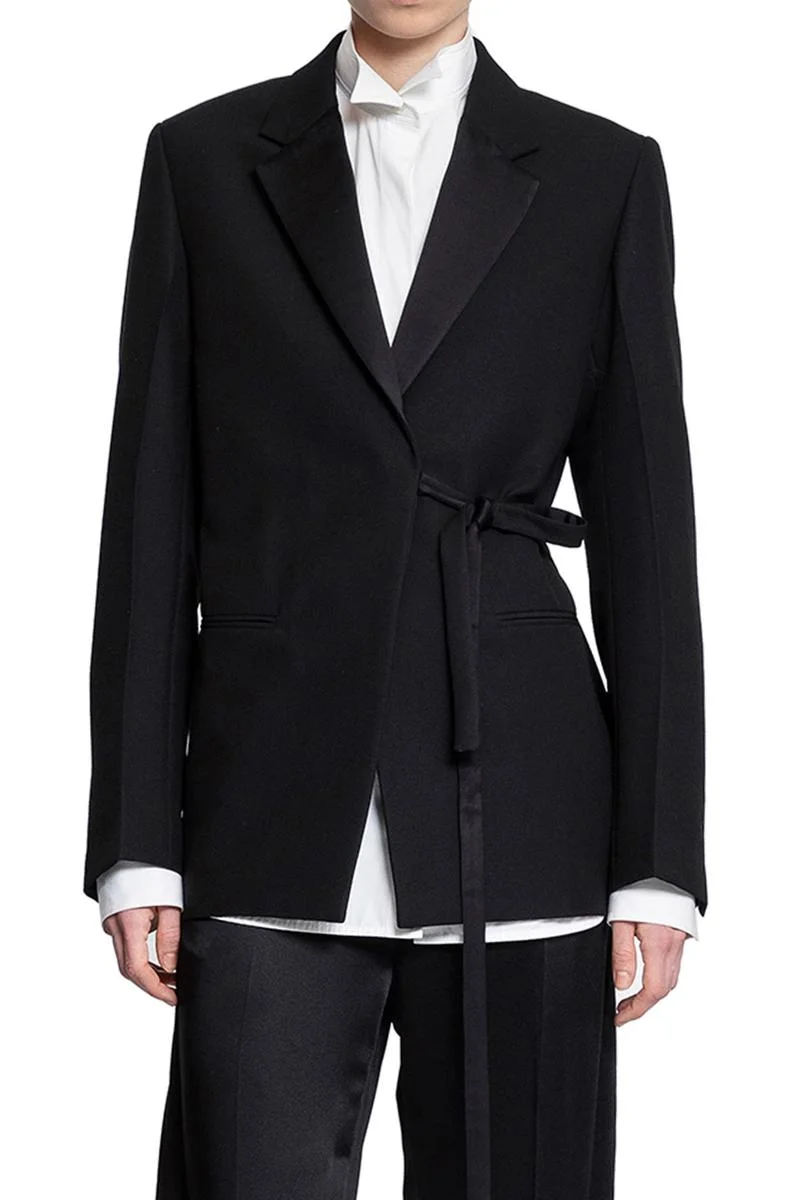SATIN-LAPEL WRAP BLAZER Gender: Women Material: 55% POLYESTER 45% WOOL Color: Black Made in: Romania Product ID: 251WRZ4728FB0026 001 *Import tax/duty will be calculated at checkout (If applicable)