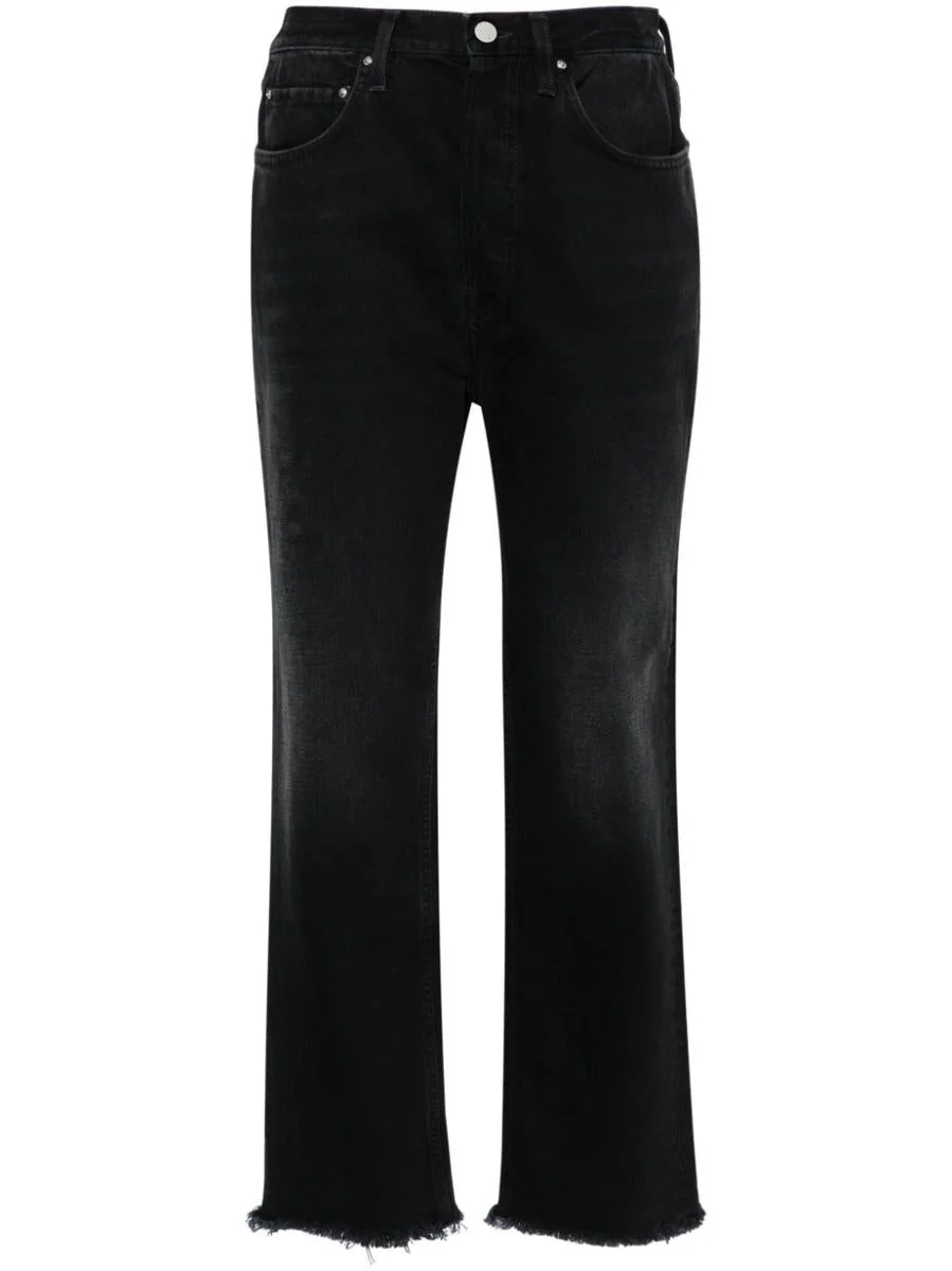 black organic cotton denim faded effect embroidered logo to the rear high-rise belt loops front button fastening classic five pockets straight leg cropped leg frayed hem This item is made from at least 50% organic materials. Learn more about what makes a product Conscious on our Conscious Criteria page This piece fits true to size. We recommend you get your regular size Model is 1,75m / 5ft 8in wearing size 27 (WAIST CM) Gender: Women Material: COTTON 100% Color: Black Made in: IT Product ID: 241WRB2545FB0046068 *Import tax/duty will be calculated at checkout (If applicable)