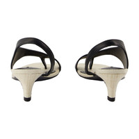 Leather heeled thong sandals black/sand