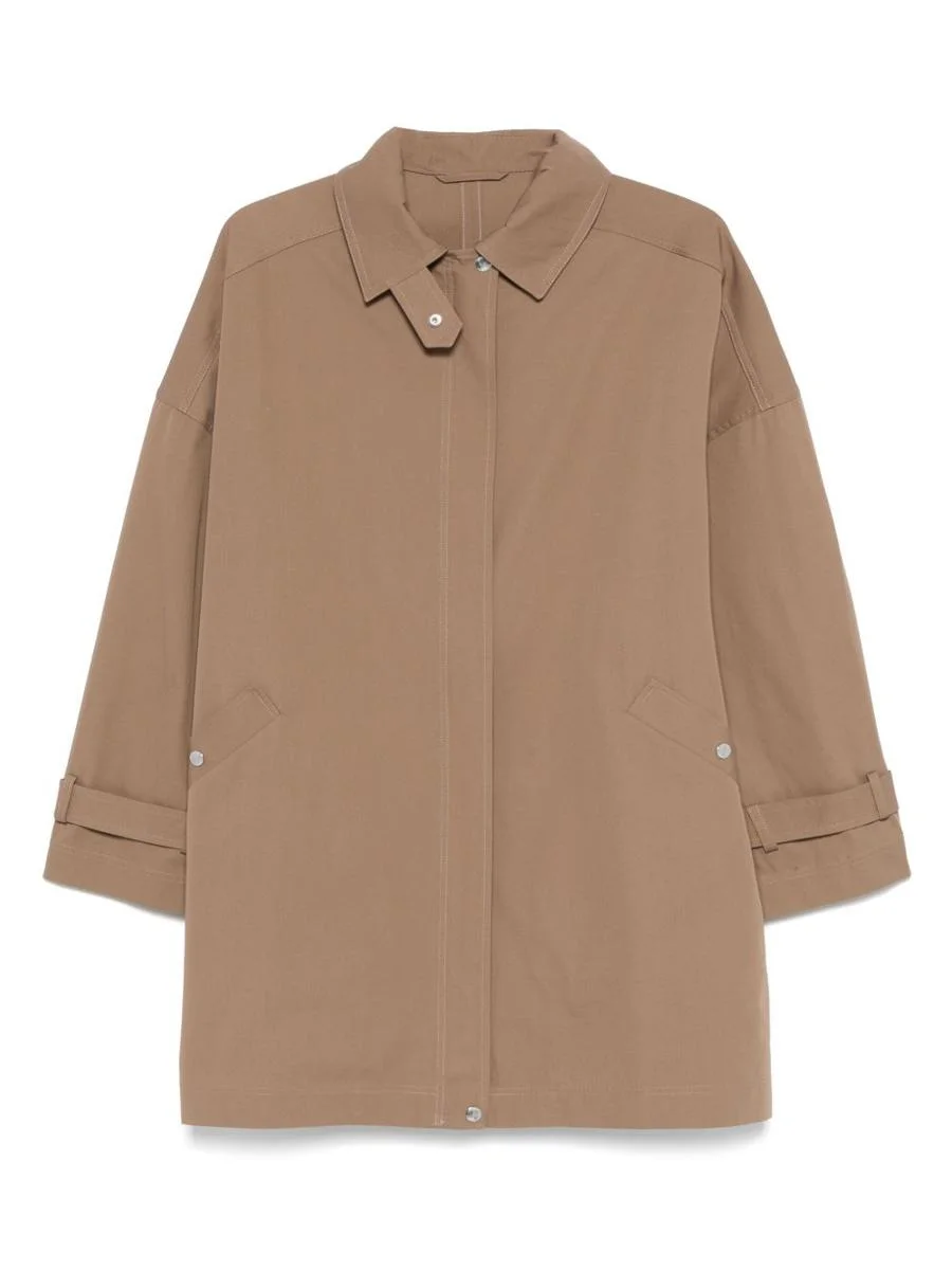taupe brown concealed front zip fastening two side welt pockets belted cuffs classic collar This piece fits true to size. We recommend you get your regular size Model is 1,75m / 5ft 8in wearing size 36 (FR) Gender: Women Material: 100% COTTON ORGANIC Color: Beige Made in: Lithuania Product ID: 253WRO0220FB0490288 *Import tax/duty will be calculated at checkout (If applicable)