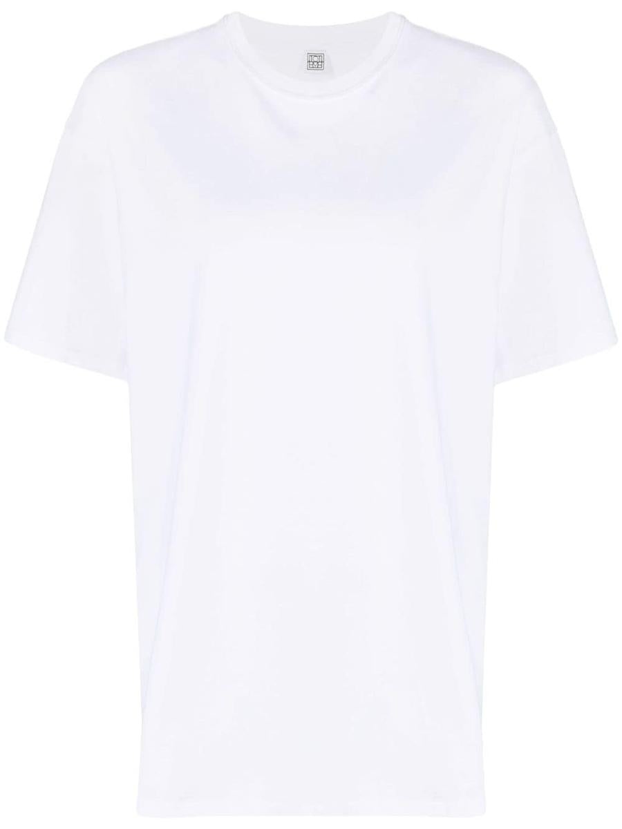 crew neck cotton T-shirt from TOTEME featuring white, organic cotton, crew neck, short sleeves and straight hem. This item is made from at least 50% organic materials.. Learn more about what makes a product Conscious on our Conscious Criteria page. This piece fits true to size. We recommend you get your regular size Model is 1,75m / 5ft 8in wearing size S Gender: Women Material: COTTON 100% Color: WHITE Made in: PT Product ID: 2325043786110 *Import tax/duty will be calculated at checkout (If applicable)